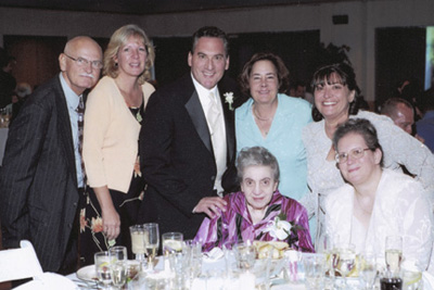 Uncle George, Aunt Pat, Uncle Dave, Aunt Sue, Mother, Grandmother and Aunt Donna at the reception