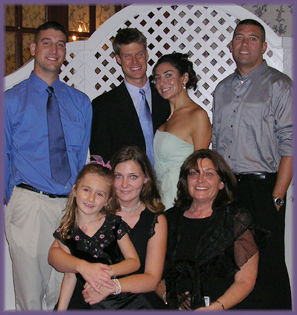 Standing: Tiffani's fiance: Josh, Justin, Amy and brother, Brian |