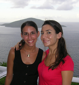 Jamie, Matron of Honor, and Amy, in St. Thomas, Hans Lollik in the background