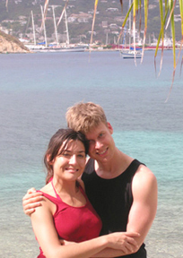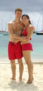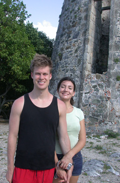 Justin and Amy on St John's island in front of a Sugar Plantation Ruin.